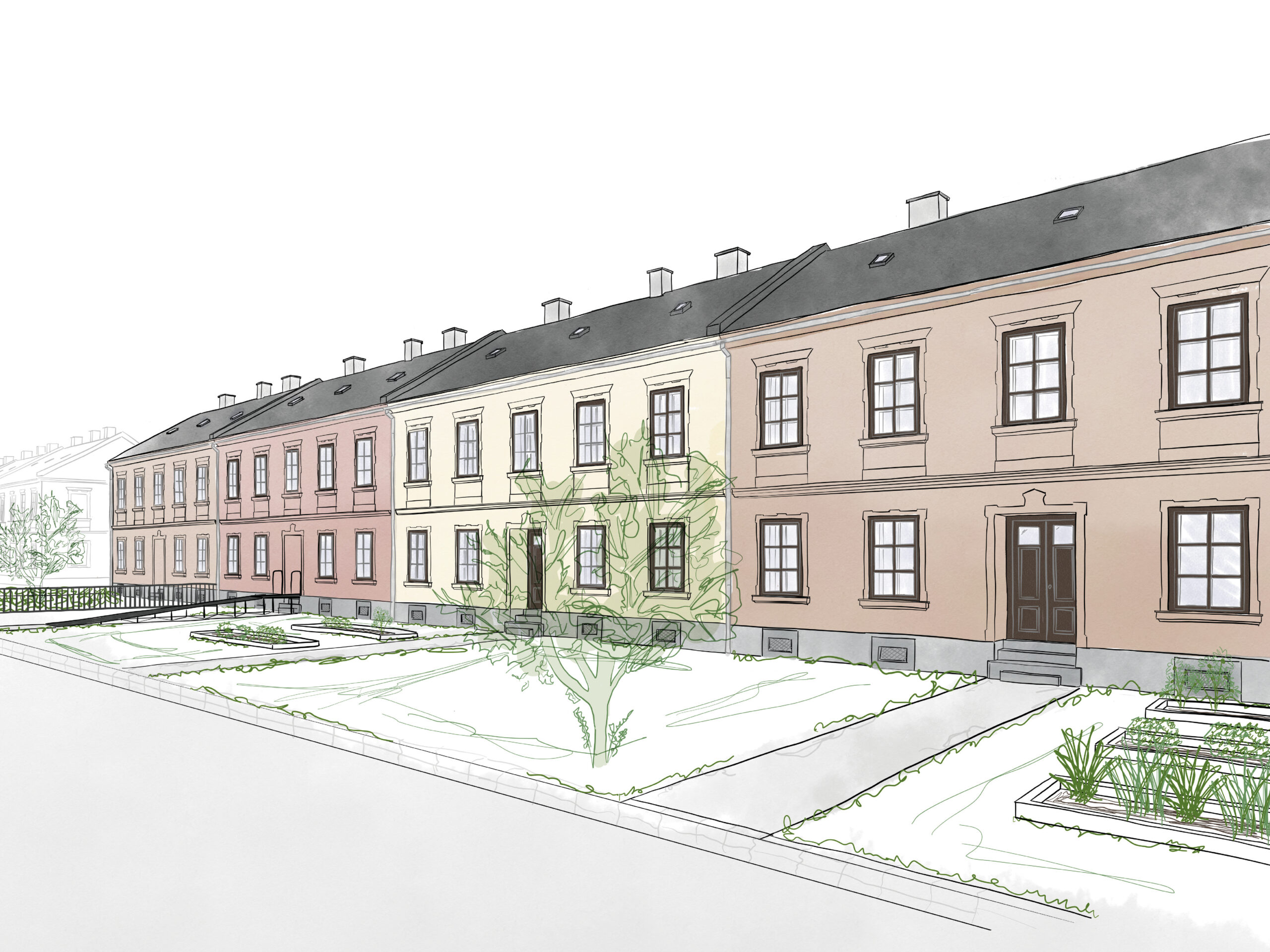 So entstanden Denkmalpflegepläne, die über die reine Dokumentation hinausgingen. Sie verbanden den respektvollen Umgang mit dem Bestand mit konkreten Entwurfsideen, die den Charakter der Siedlungen weiterdenken und ihre Zukunftsfähigkeit stärken. Dabei wurden die Siedlungen nicht als abgeschlossene historische Objekte betrachtet, sondern als lebendige Räume mit Potenzial für Veränderung und Weiterentwicklung.