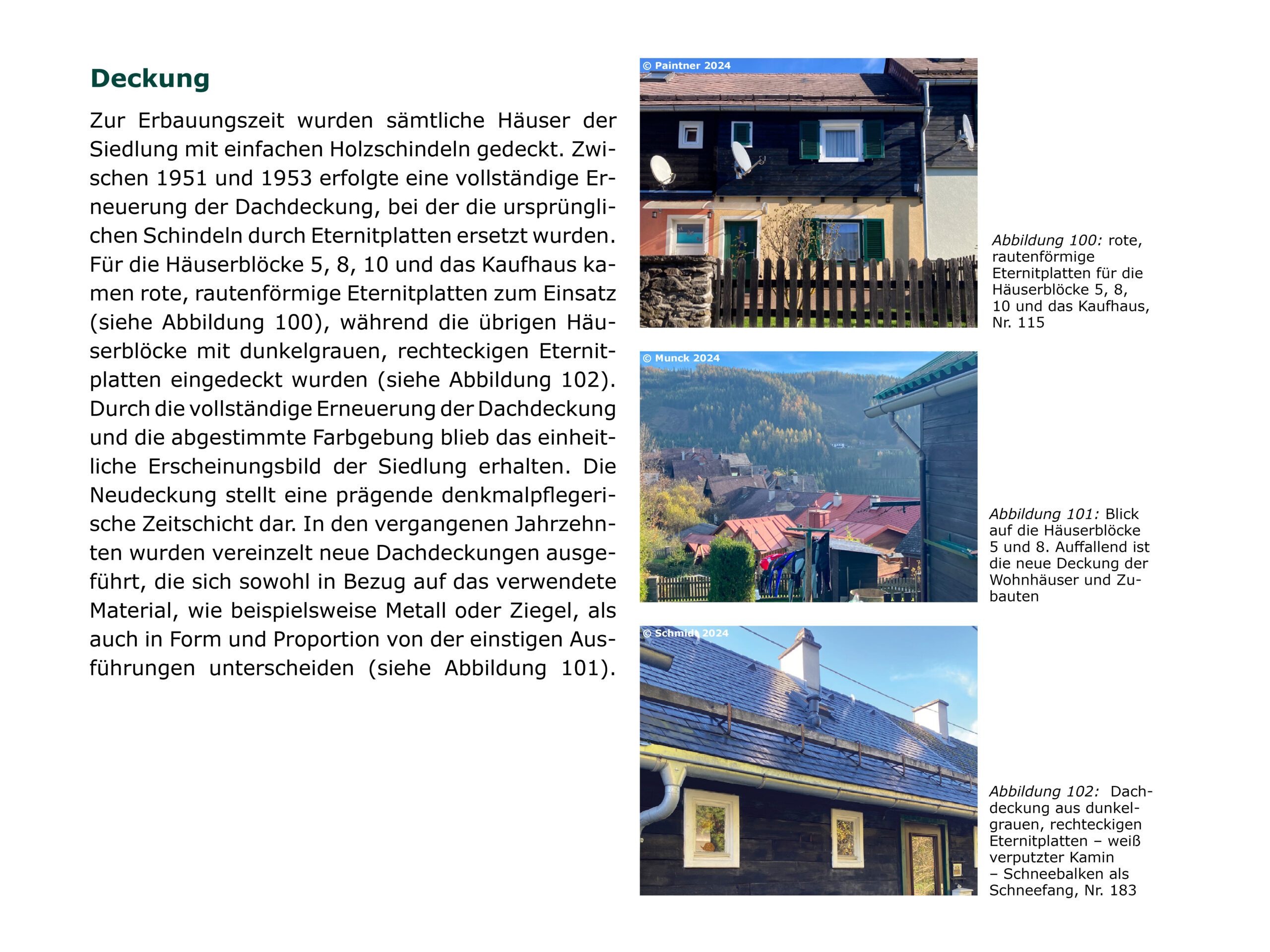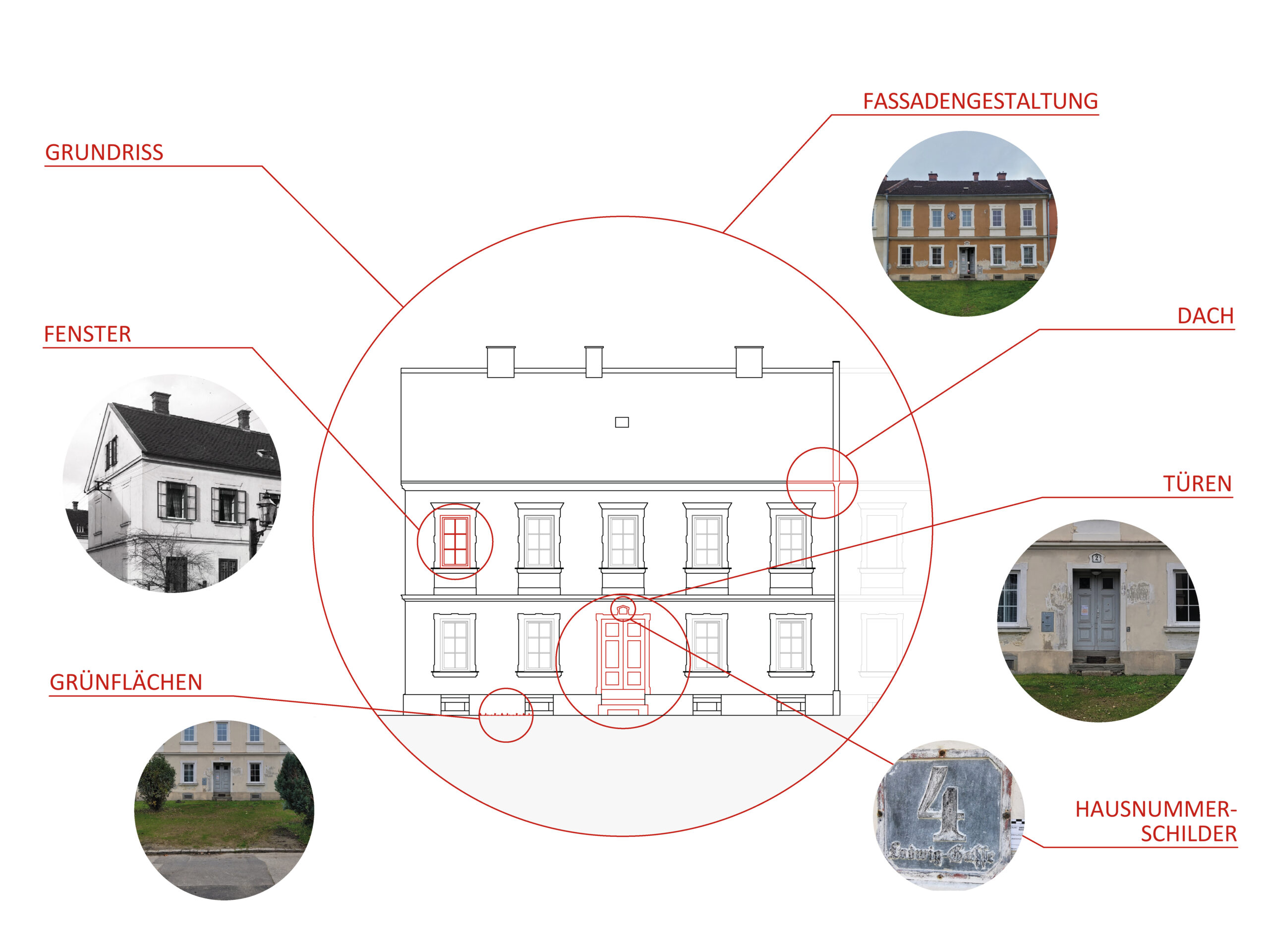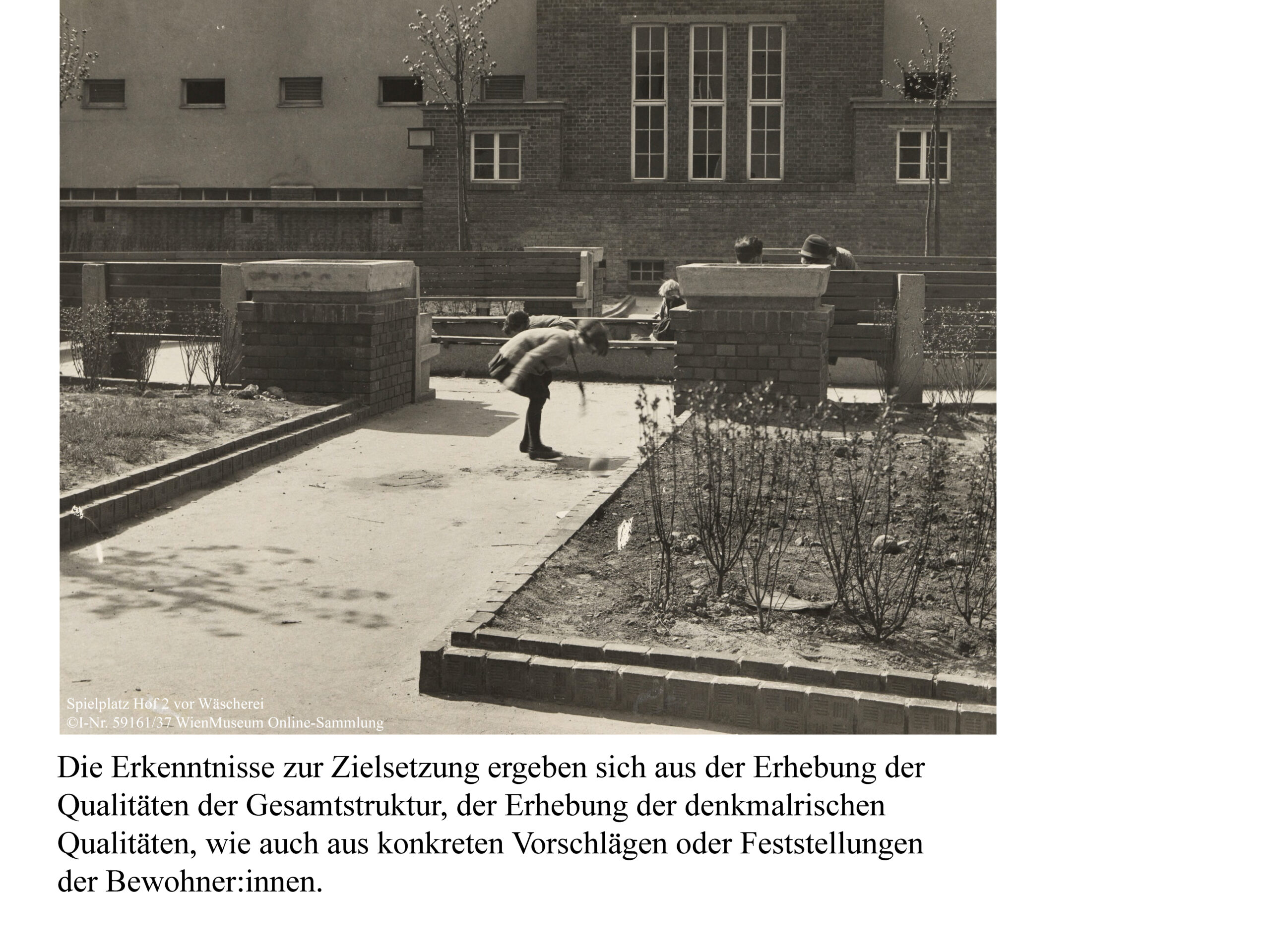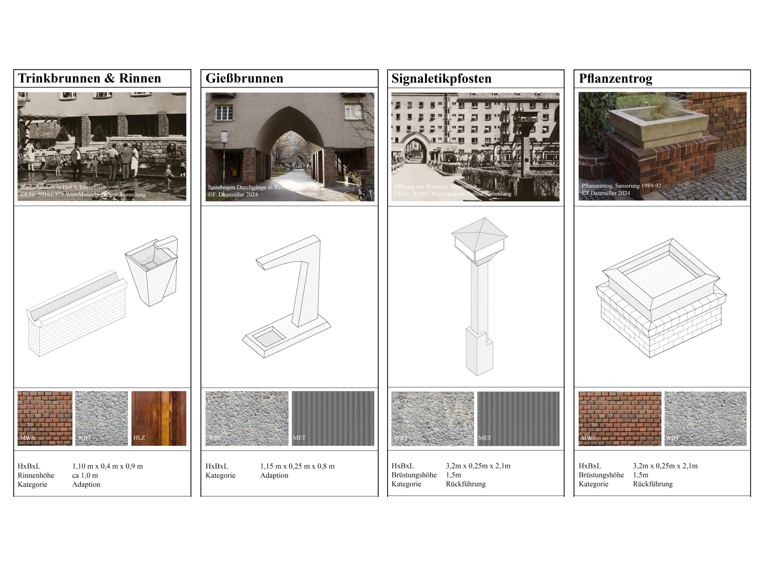 In der Logik des Denkmalpflegeplans wurden, auf Basis des erfassten Bauteilkatalogs und der Wertung in Bedeutungsebenen, strategische Maßnahmen zur Pflege, Reparatur, Rückführung und Adaption entwickelt. Mit starker Einbindung der Bewohner:innen erfolgt die Erhaltung in kleinteiligen, individuellen Schritten gemäß den erfassten Bauteilen. Die architektonische Substanz bleibt gewahrt, Schäden werden gezielt im Sinne des Katalogs repariert, um die ästhetischen und sozialen Qualitäten gemäß der bauzeitlichen Intention zu sichern.