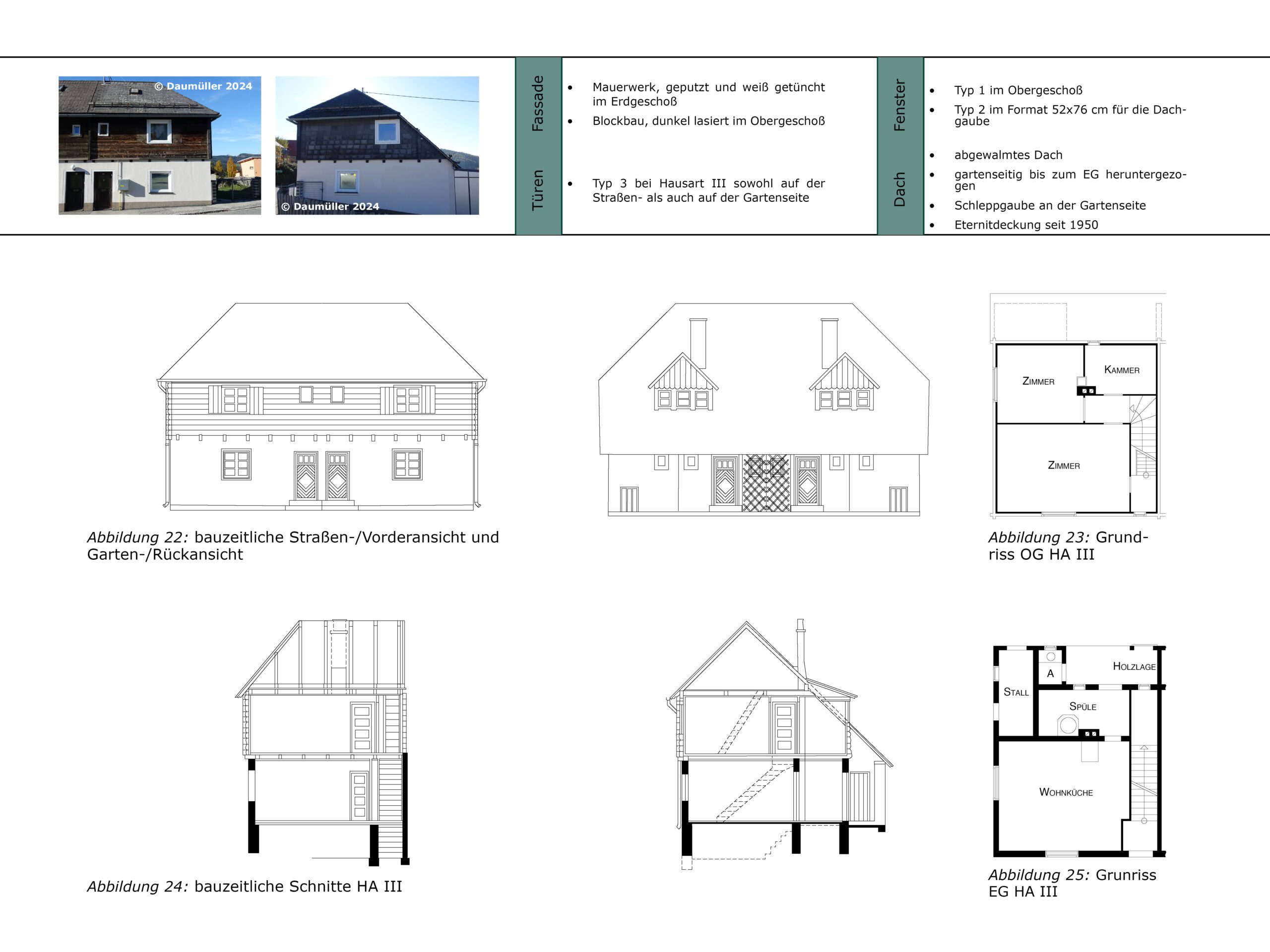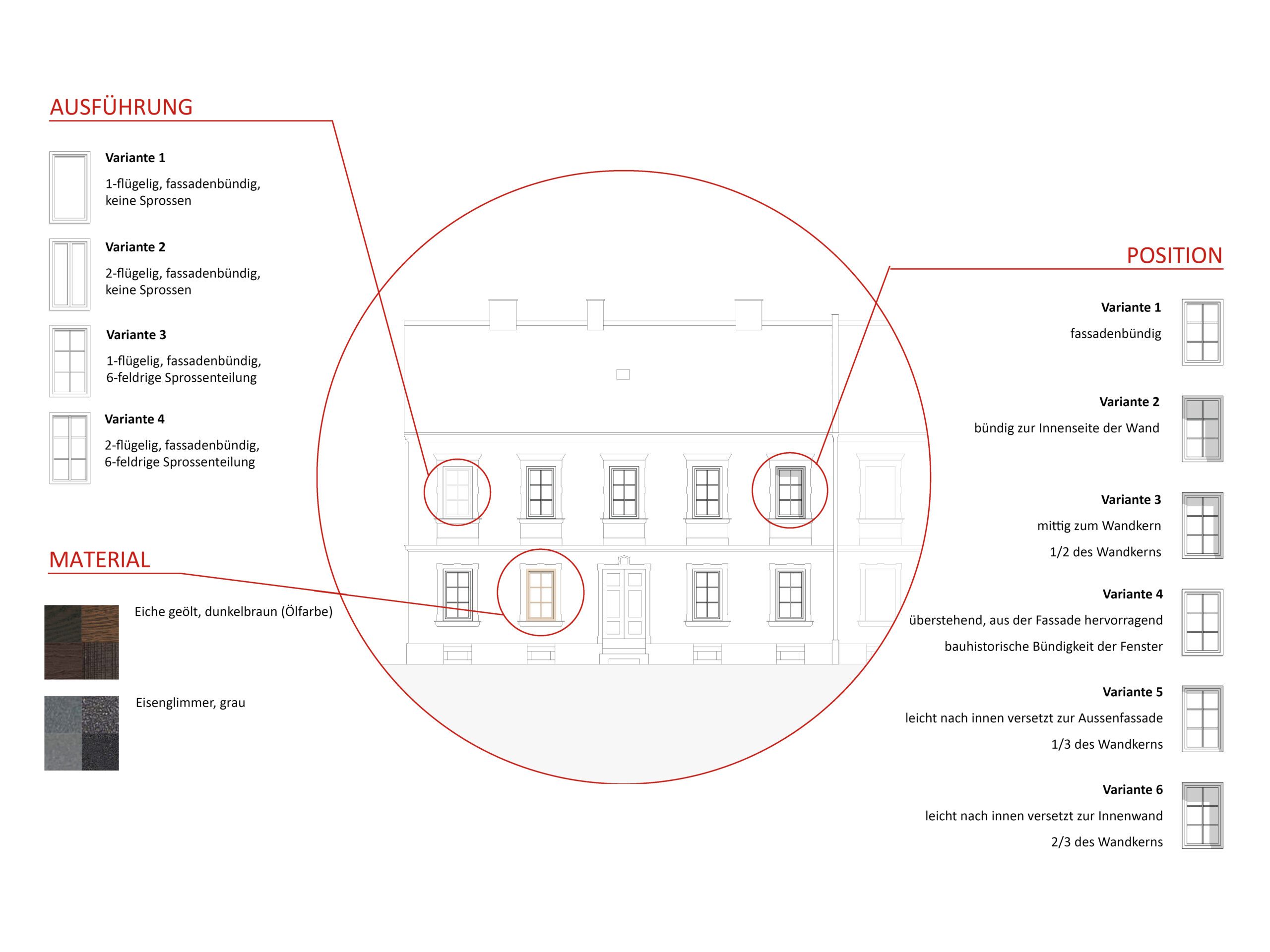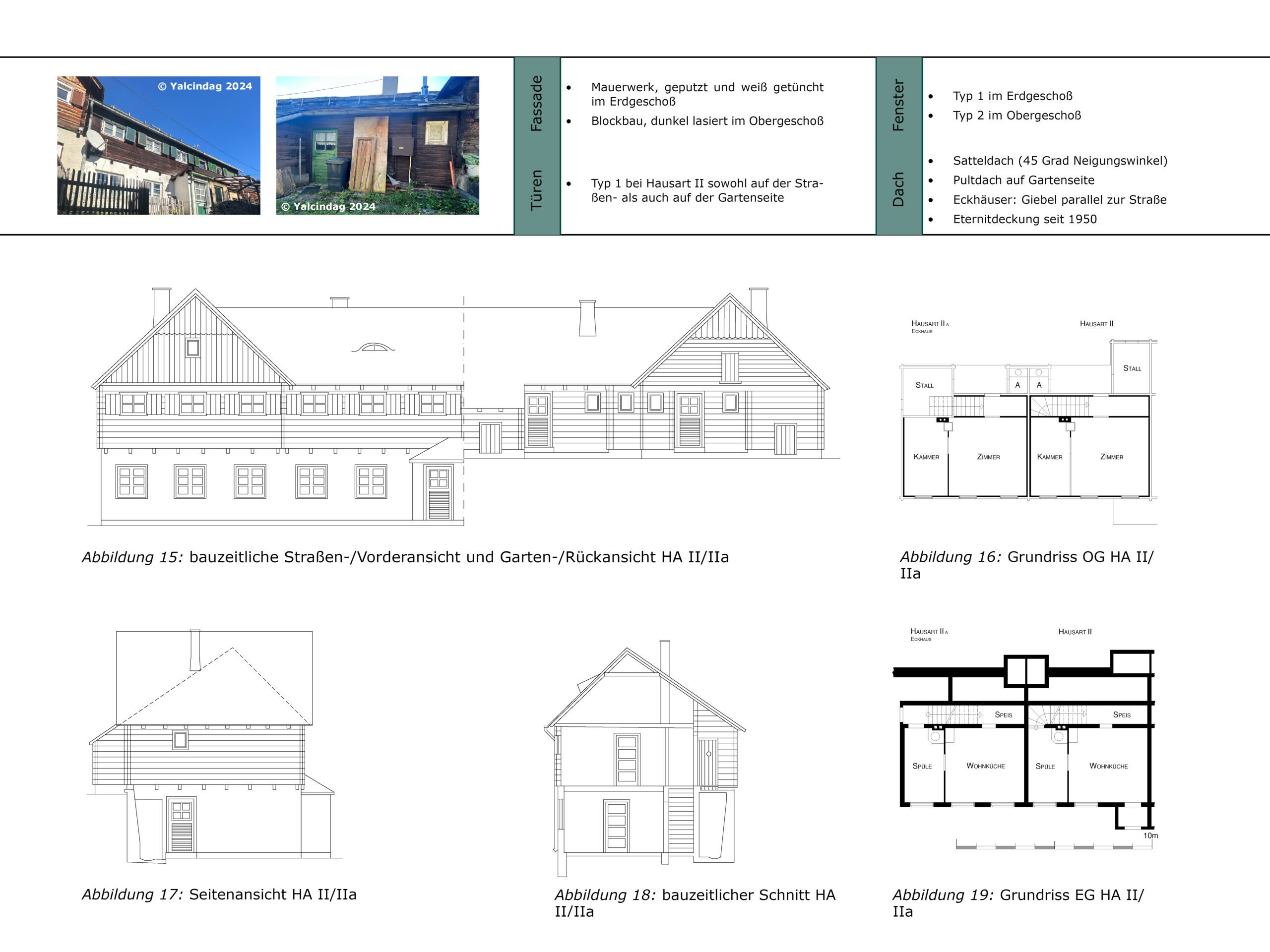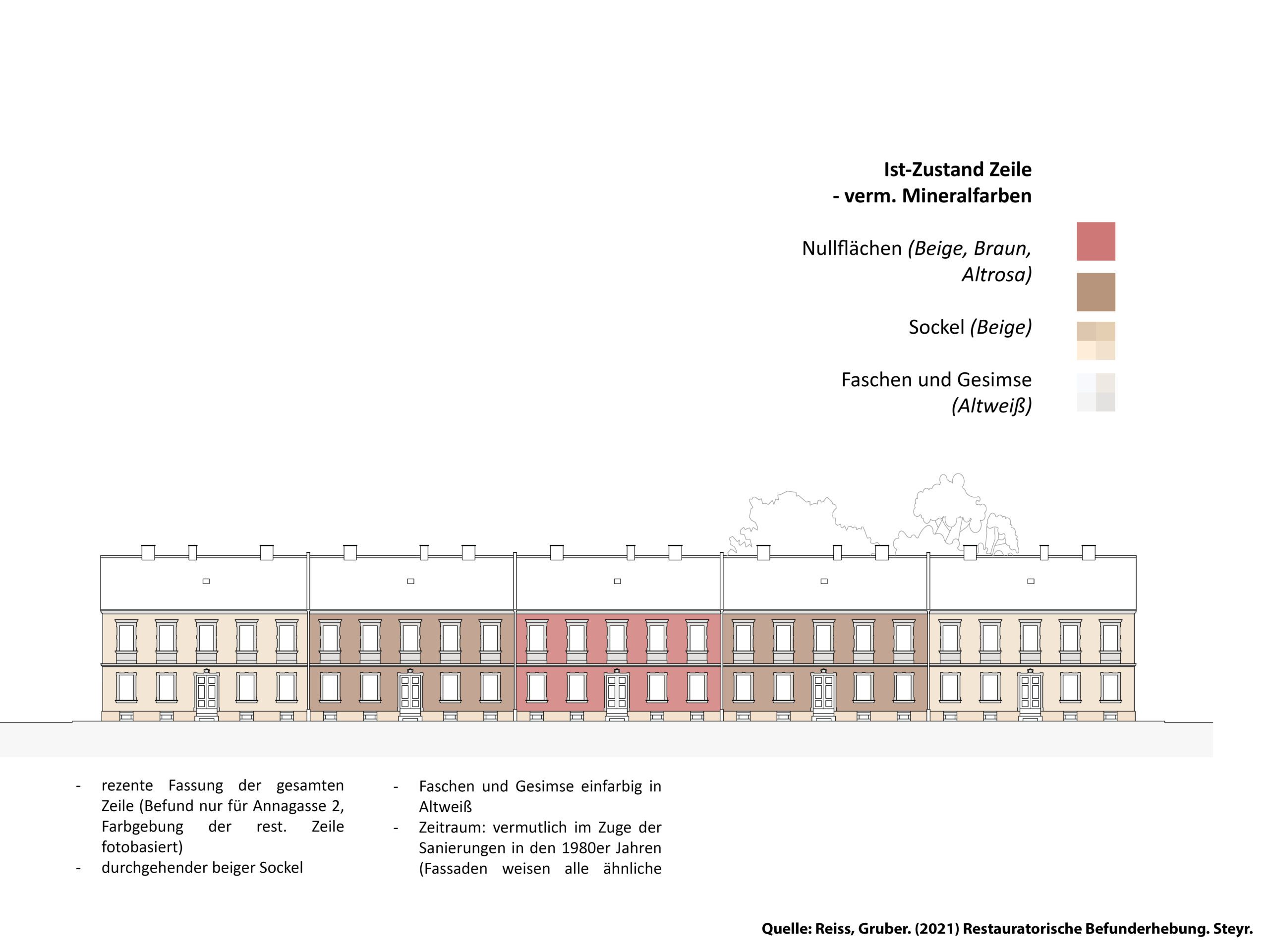 Der Entwurf zur Eysnfeldsiedlung in Steyr baut auf dem im Zuge der Lehrveranstaltung „Planen, Pflegen und Wohnen“ erarbeiteten Denkmalpflegeplan auf. Dabei wurde der Leitfaden des Bundesdenkmalamts aus dem Jahr 2024 angewendet und in der Auseinandersetzung mit dem Bestand konkret erprobt. Ziel des Entwurfs ist es, den historischen Charakter der denkmalgeschützten Arbeitersiedlung mit ihrer zeilenartigen Struktur und den (Nutz-)Gärten zu bewahren und zugleich an heutige Wohnbedürfnisse anzupassen. Im Mittelpunkt des Entwurfs steht eine umfangreiche Variantenanalyse, bei der unterschiedliche Perspektiven – denkmalpflegerische, gestalterische und soziale – gegeneinander abgewogen wurden. Zentrale Maßnahmen sind Grundrissvarianten, barrierefreie Zugänge, die reversible Dämmung von Kellerdecke und Dachboden sowie ein differenziertes Farbkonzept auf Basis restauratorischer Befunde. Auch Fenster- und Stiegenhausgestaltung werden präzise entwickelt. Die Anliegen der Bewohner:innen flossen dabei aktiv in den Entwurfsprozess ein.