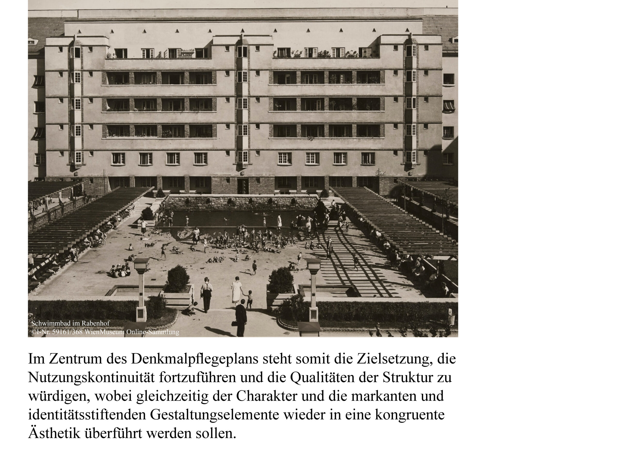 Der Rabenhof ist ein exemplarisches Beispiel für die architektonischen und sozialen Ziele des „Roten Wien“. Als Gemeindebau für rund 5.000 Bewohner:innen in expressionistischer Formensprache, samt öffentlichen Gemeinschaftsbereichen und Geschäftslokalen, verbindet er standardisierte Elemente durch immer neue Kombinationen zu individuellen Gebäuden. Diese Variation im klassischen ‚Superblock‘ schafft einen außergewöhnlichen Identifikationswert mit architektonischer Qualität.