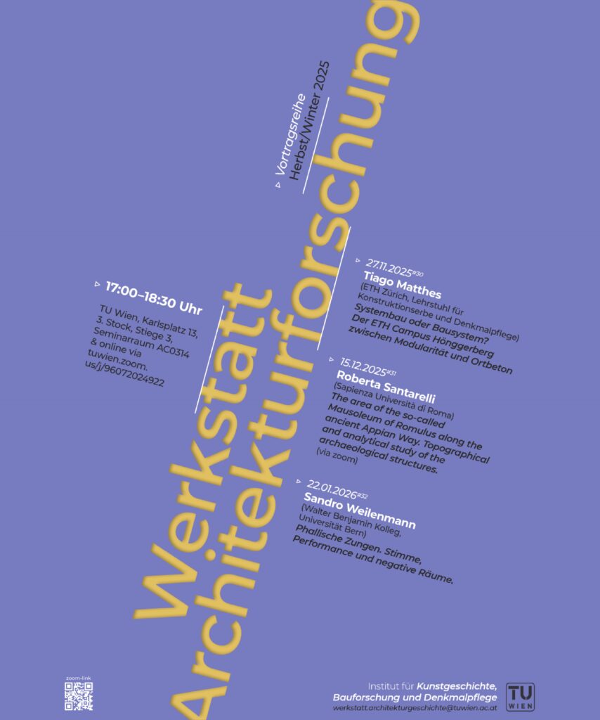 Vortragsreihe des Forschungsbereichs Denkmalpflege und Bauen im Bestand im Wintersemester 2024/2025.